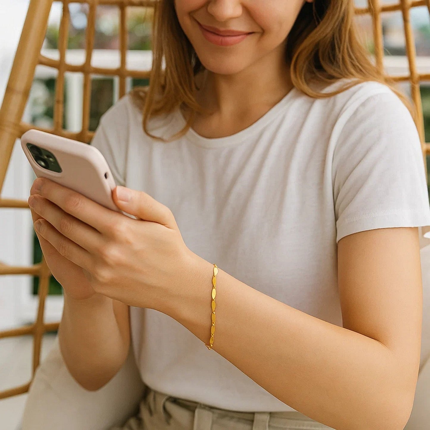 Introducing our 14K Yellow Gold Flat Pebble Link bracelet, a unique and elegant addition to any jewelry collection. This chain features flat pebble-shaped links that lay smoothly against the skin, offering a modern twist on classic bracelet designs. Available in 7 inches lengths, it caters to various styling preferences. The secure lobster clasp ensures ease of wear and peace of mind. Perfect for everyday elegance or special occasions, this versatile piece adds a touch of sophistication to any ensemble.