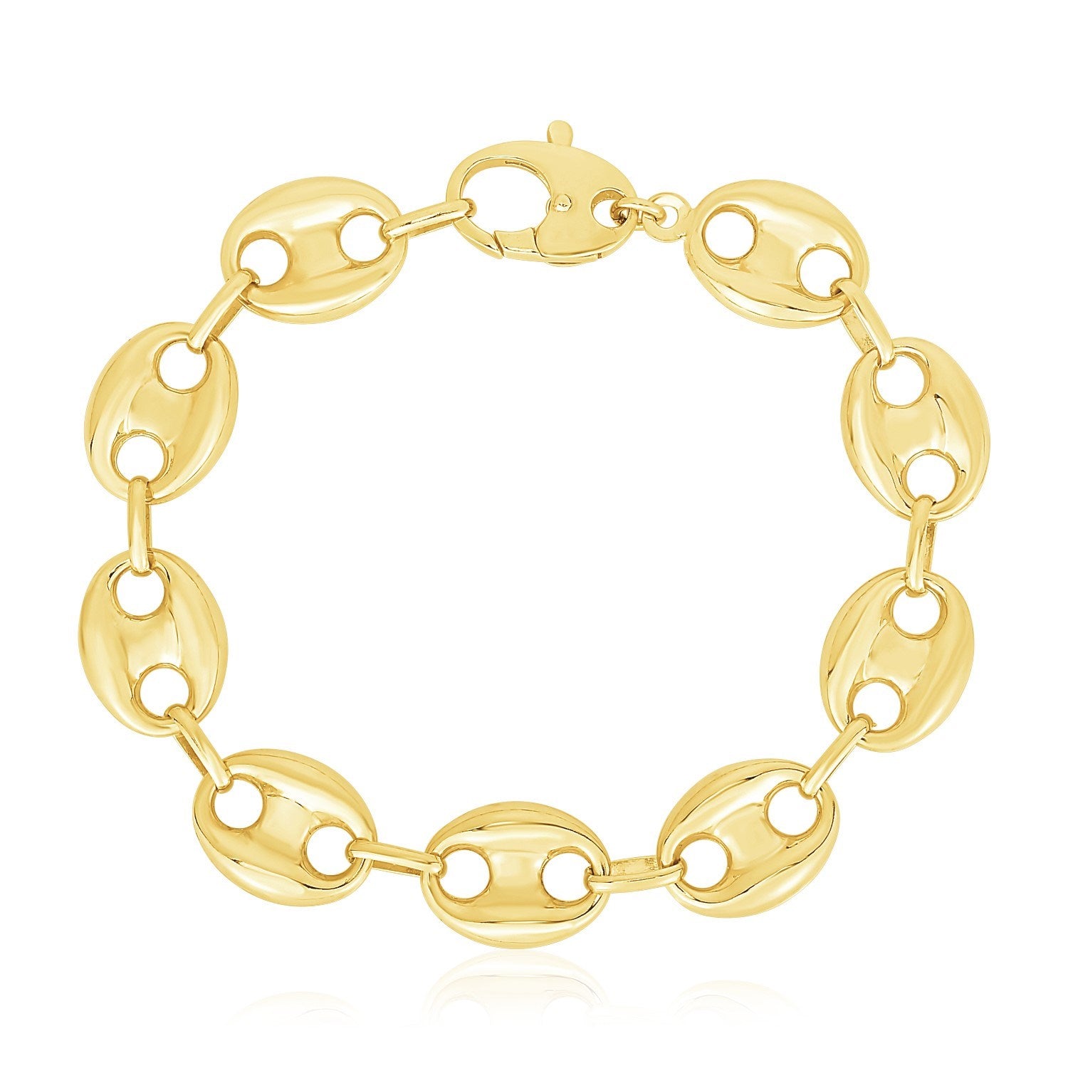 14k Yellow Gold High Polish Lite Puffed Mariner Link Bracelet (15.00 mm)
