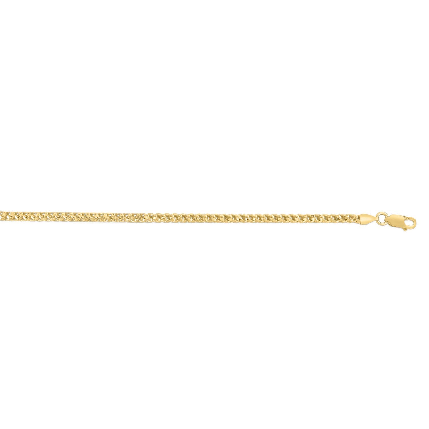 Crafted in sterling silver with a luxurious yellow gold plating, this 3.20 mm diamond-cut Franco chain features tightly woven, four-sided links that deliver exceptional strength and brilliant light-catching sparkle, making it a bold yet refined piece perfect for wearing solo or pairing with your favorite pendant.